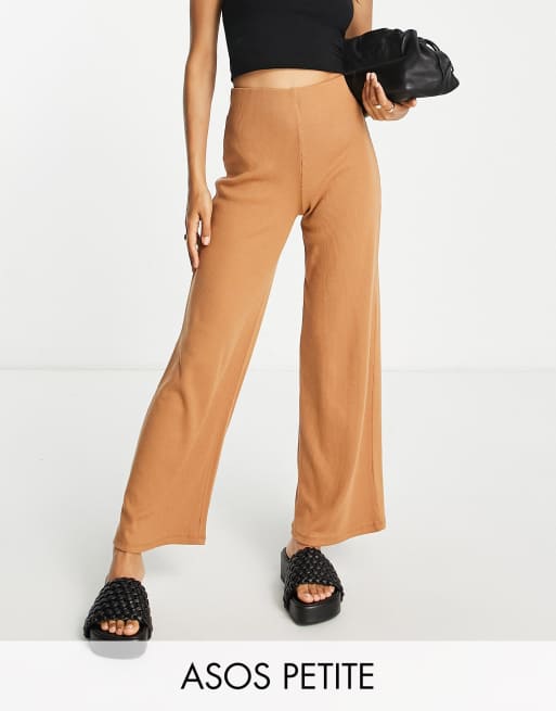 ASOS DESIGN Petite – Camelowe prążkowane spodnie dad fit