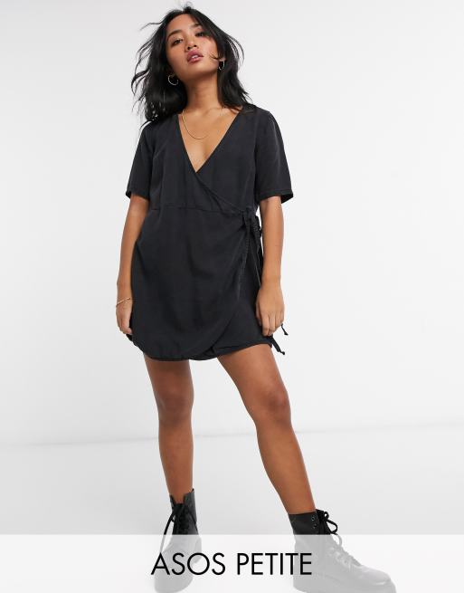 ASOS DESIGN Petite – Czarna kopertowa sukienka z miękkiego denimu