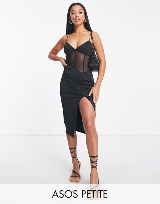 ASOS DESIGN Petite – Czarna siateczkowa sukienka gorsetowa midi