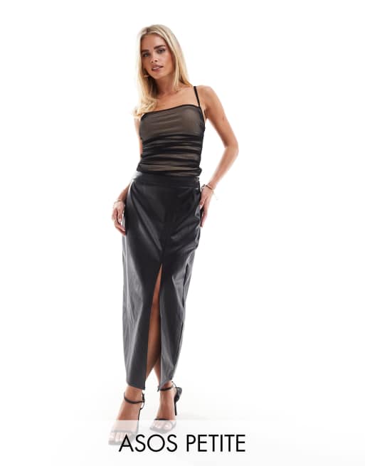 ASOS DESIGN Petite – Czarna spódnica maxi z imitacji skóry z rozcięciem z boku