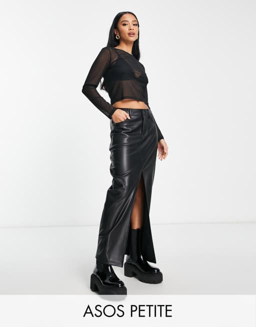 ASOS DESIGN Petite – Czarna spódnica maxi z imitacji skóry