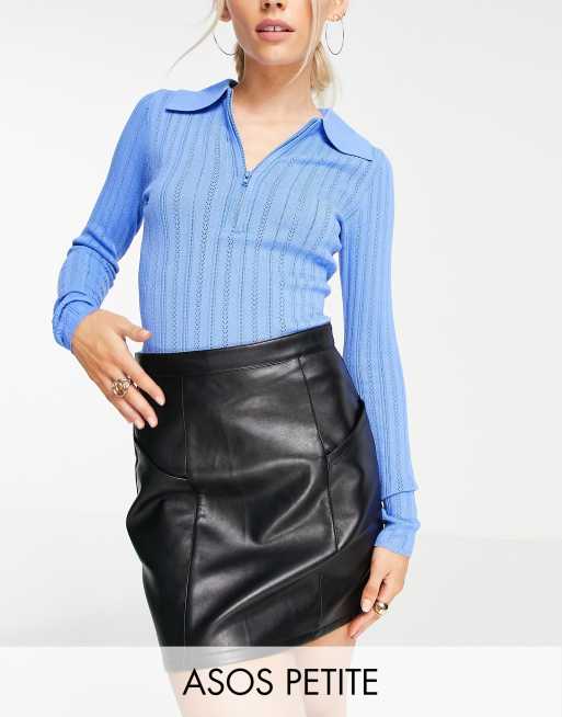 ASOS DESIGN Petite – Czarna spódnica mini z podwyższonym stanem z imitacji skóry