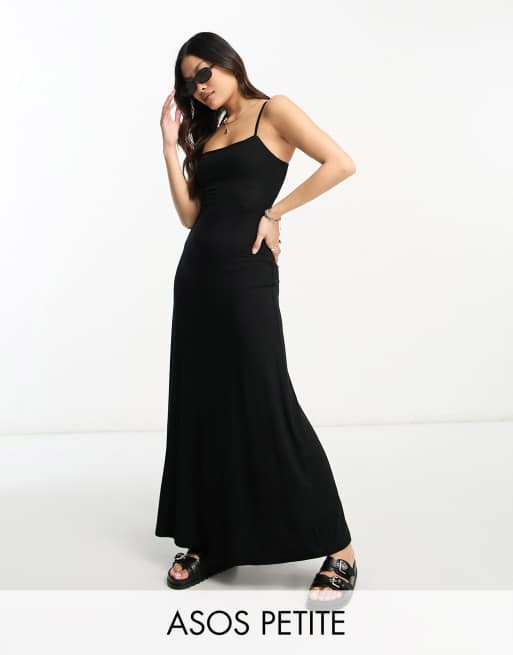 ASOS DESIGN Petite – Czarna sukienka maxi na ramiączkach z kwadratowym dekoltem