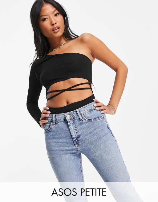 ASOS DESIGN Petite – Czarne asymetryczne body na jedno ramię