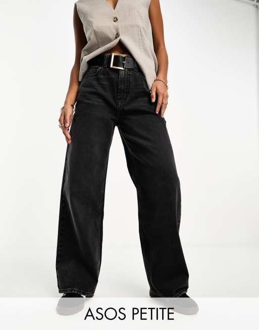 ASOS DESIGN Petite – Czarne jeansy o fasonie dad z szerokimi nogawkami i efektem sprania