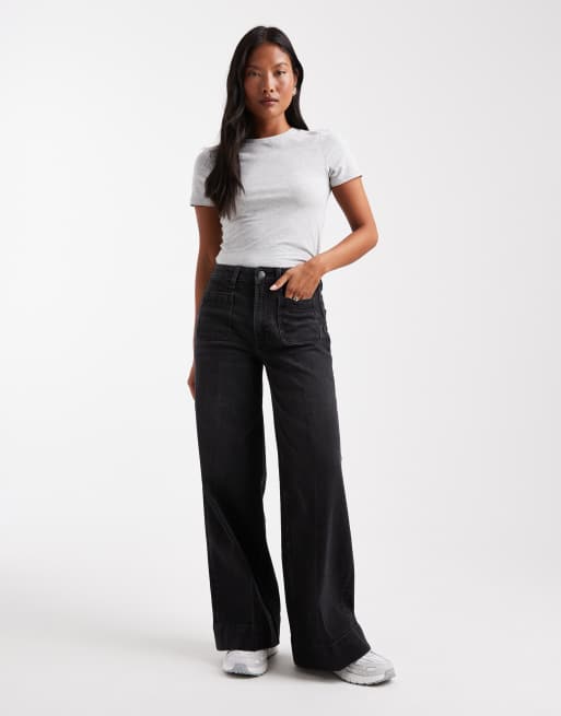 ASOS DESIGN Petite – Czarne jeansy z szerokimi nogawkami, podwyższonym stanem i kieszeniami z przodu