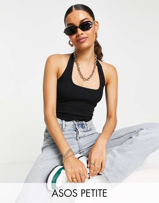 ASOS DESIGN Petite – Czary krótki top z dekoltem karo typu halter