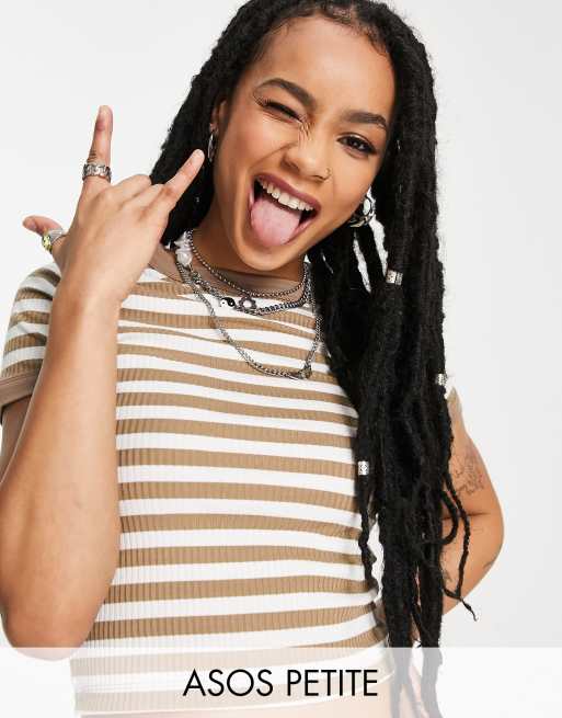 ASOS DESIGN Petite – Dopasowany prążkowany T-shirt w brązowe paski