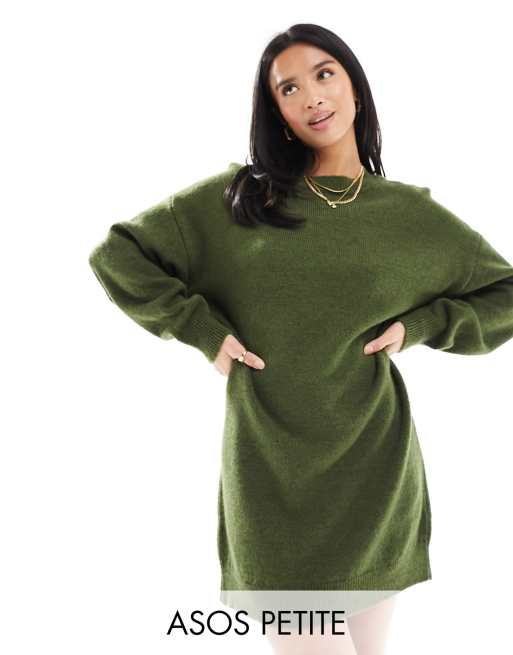ASOS DESIGN Petite – Dzianinowa sukienka mini z okrągłym dekoltem w kolorze khaki