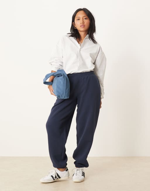 ASOS DESIGN Petite – Granatowe joggersy ze ściągaczami i przyjemnym wykończeniem od spodu