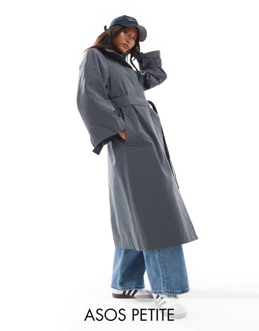 ASOS DESIGN Petite – Granatowy trencz o wydłużonym fasonie oversize, ze stójką