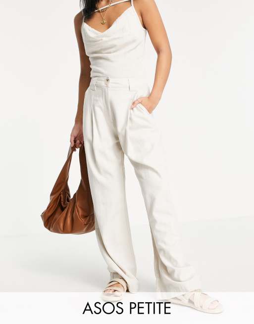 ASOS DESIGN Petite – Jasnobeżowe lniane spodnie z szerokimi nogawkami