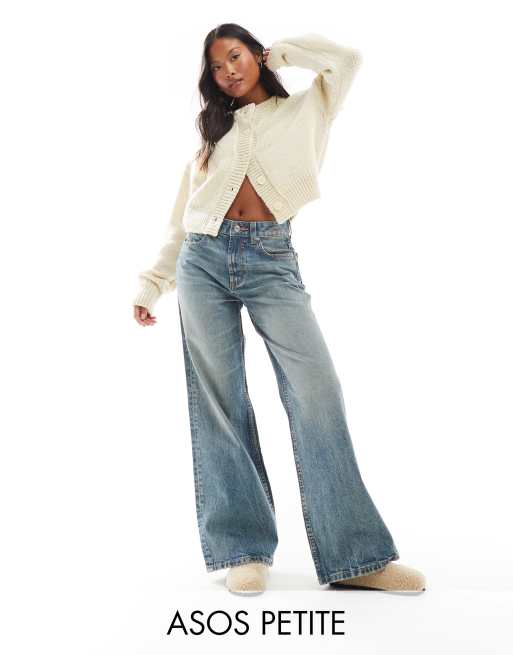 ASOS DESIGN Petite – Jasnoniebieskie jeansy o fasonie dad z szerokimi nogawkami