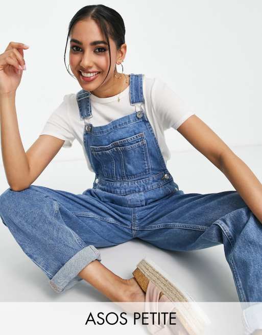 ASOS DESIGN Petite – Klasyczne jeansowe ogrodniczki w kolorze niebieskim