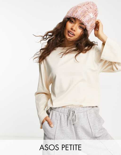 ASOS DESIGN Petite – Kremowy T-shirt z długimi, szerokimi rękawami
