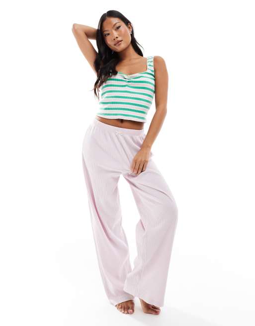 ASOS DESIGN Petite – Mieszaj i łącz – Prążkowane liliowe spodnie od piżamy