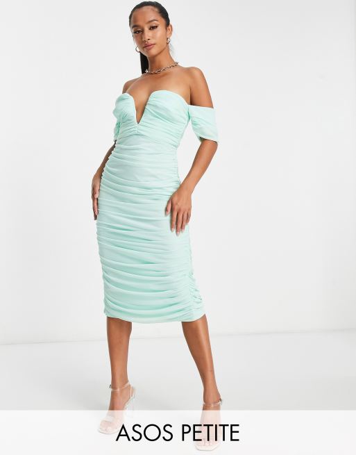 ASOS DESIGN Petite – Miętowa sukienka midi z dekoltem bandeau z siateczki