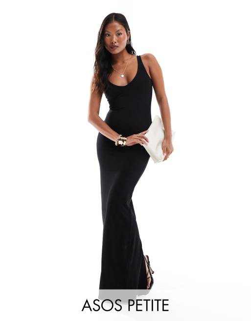 ASOS DESIGN Petite – Minimalistyczna czarna sukienka maxi z dekoltem w stylu lat 90.