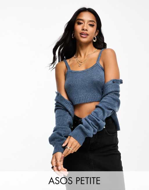 ASOS DESIGN Petite – Niebieski dzianinowy bliźniak z topem na ramiączkach