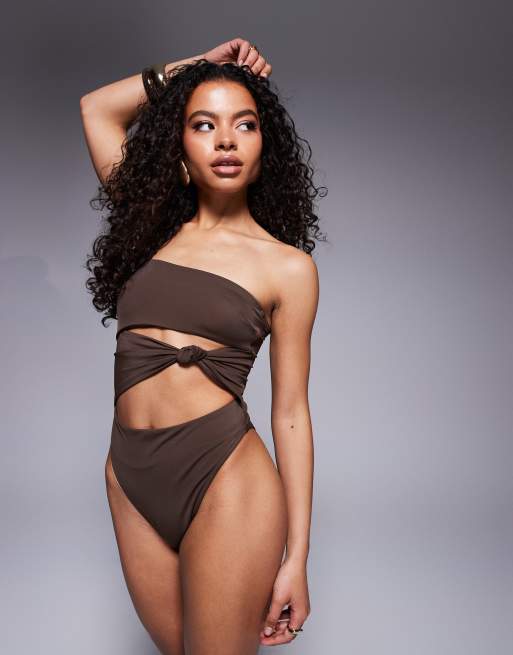 ASOS DESIGN Petite – Nina – Brązowy strój kąpielowy