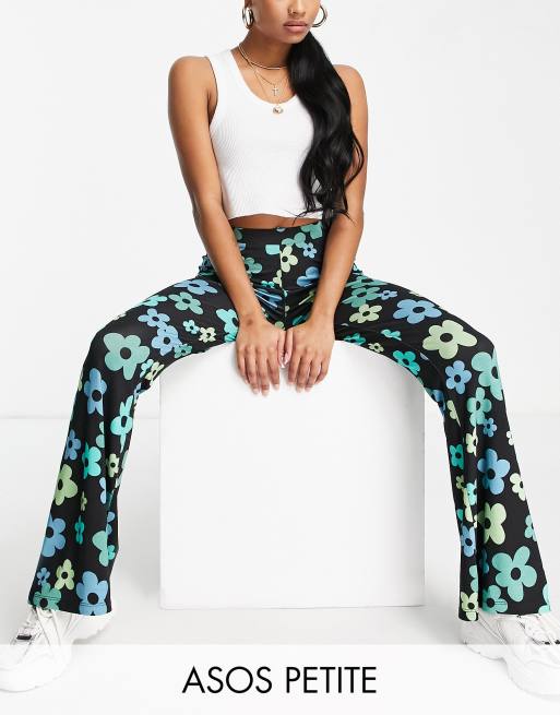 ASOS DESIGN Petite – Spodnie z rozszerzanymi nogawkami w niebieski kwiatowy wzór
