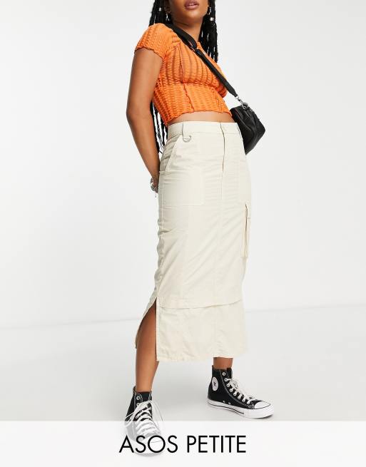 ASOS DESIGN Petite – Szarozielona spódnica midi z bojówkowymi kieszeniami