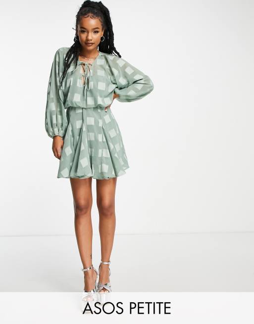 ASOS DESIGN Petite – Szałwiowa sukienka mini z głębokim dekoltem i spódnicą z godetami