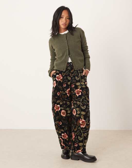 ASOS DESIGN Petite – Sztruksowe spodnie z baryłkowatymi nogawkami w kwiatowy wzór