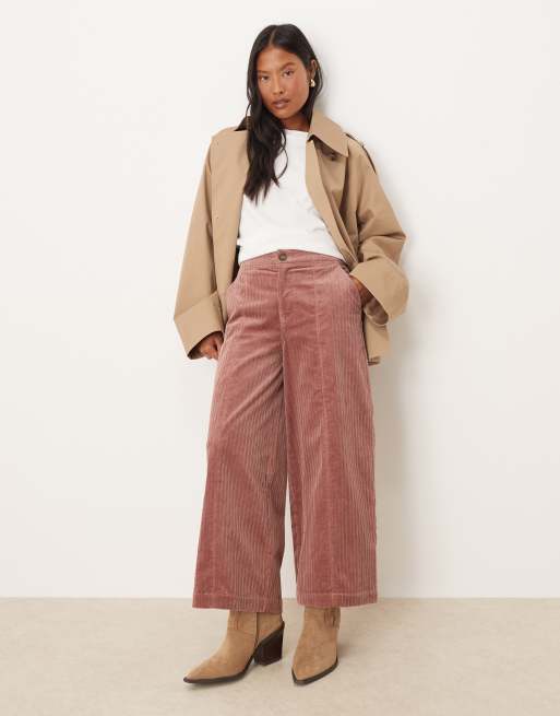 ASOS DESIGN Petite – Sztruksowe spodnie z szerokimi nogawkami do kostki w różowym kolorze