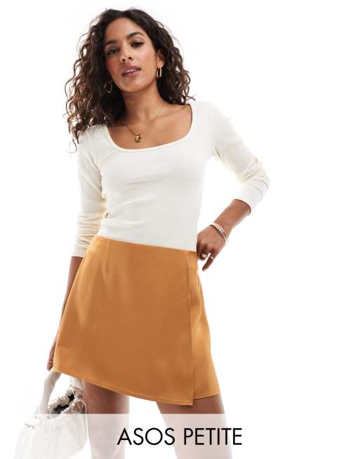 ASOS DESIGN Petite – Złota satynowa spódnica kopertowa