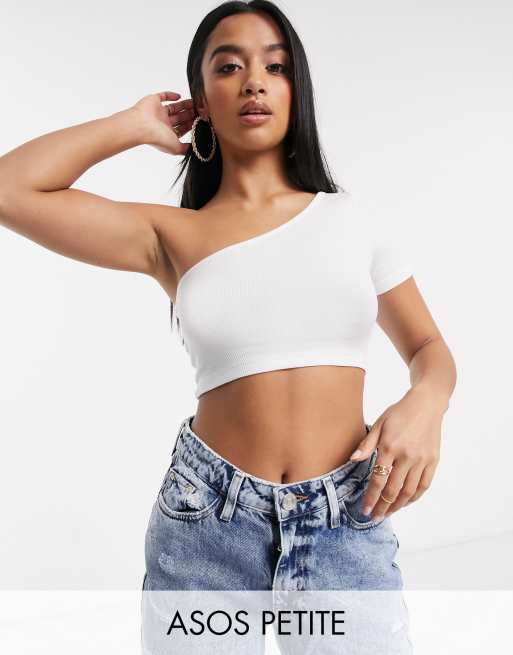 ASOS DESIN Petite – Biały top na jedno ramię o bardzo krótkim fasonie