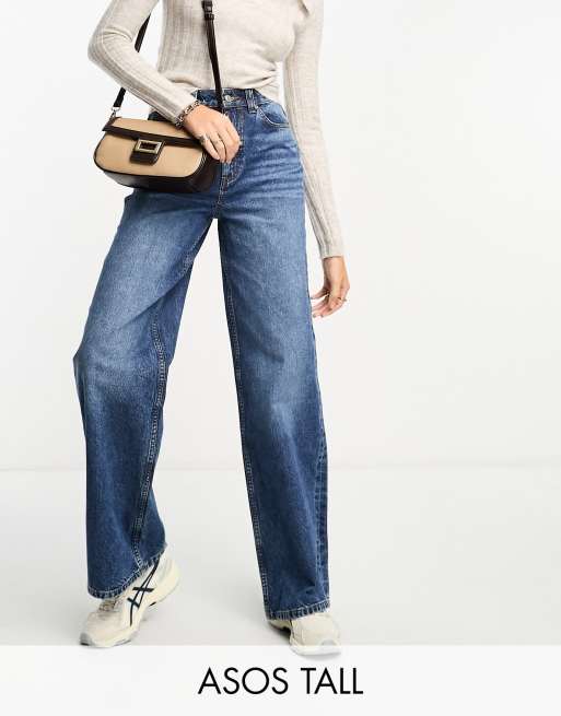 ASOS DESIGN Tall – Ciemnoniebieskie jeansy o fasonie dad z szerokimi nogawkami