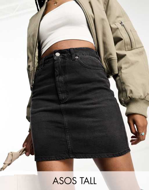 ASOS DESIGN Tall – Czarna jeansowa spódnica mini z wysokim stanem