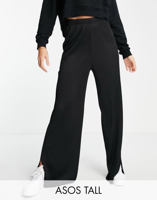 ASOS DESIGN Tall – Czarne plisowane spodnie z szerokimi nogawkami i rozcięciami po bokach