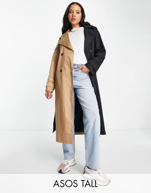 ASOS DESIGN Tall –Czarno-beżowy trencz