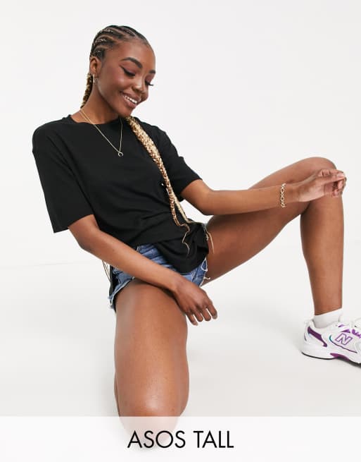 ASOS DESIGN Tall – Czarny prążkowany T-shirt oversize z bocznymi rozcięciami i ozdobnym szwem