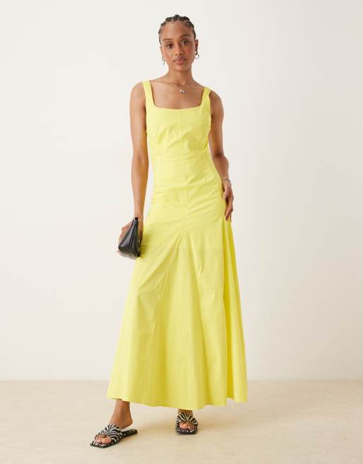 ASOS DESIGN Tall – Jasnożółta taliowana sukienka midi bez rękawów