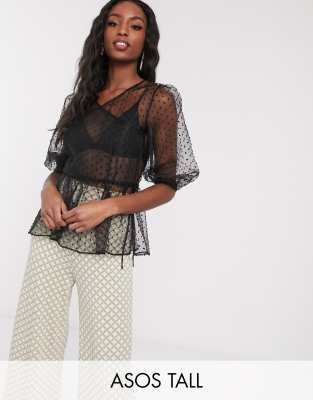 ASOS DESIGN Tall – Kopertowy top z organzy typu dobby
