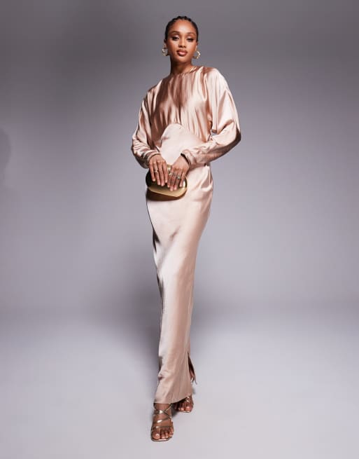 ASOS DESIGN Tall – Kremowa satynowa sukienka maxi z nietoperzowymi rękawami