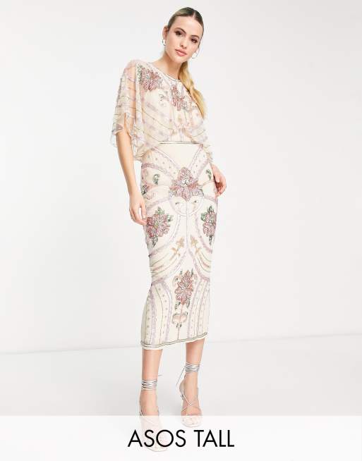 ASOS DESIGN Tall – Kremowa sukienka midi ze zdobieniem w secesyjnym stylu