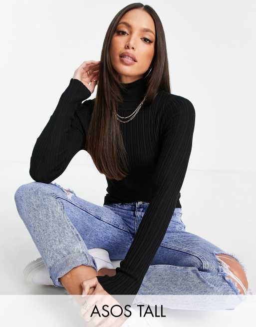 ASOS DESIGN Tall – Kremowy prążkowany sweter z golfem