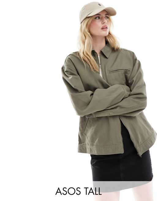 ASOS DESIGN Tall – Kurtka koszulowa Harrington z diagonalu w kolorze khaki