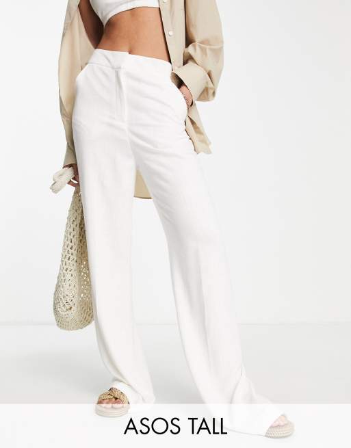 ASOS DESIGN Tall – Lniane luźne dzwony z szerokimi nogawkami w białym kolorze