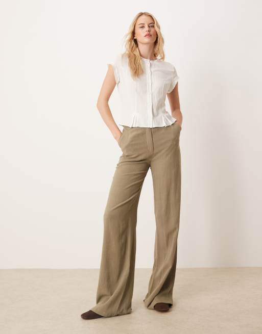 ASOS DESIGN Tall – Luźne spodnie z prostymi nogawkami z domieszką lnu w kolorze khaki