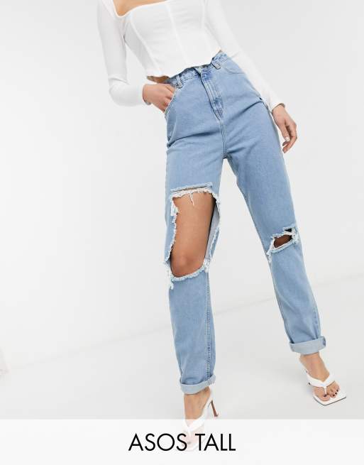 ASOS DESIGN Tall – Niebieskie mom jeans z wysokim stanem i rozdarciami