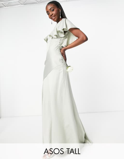 ASOS DESIGN Tall – Satynowa sukienka maxi ze zwiewnymi rękawami i guzikami