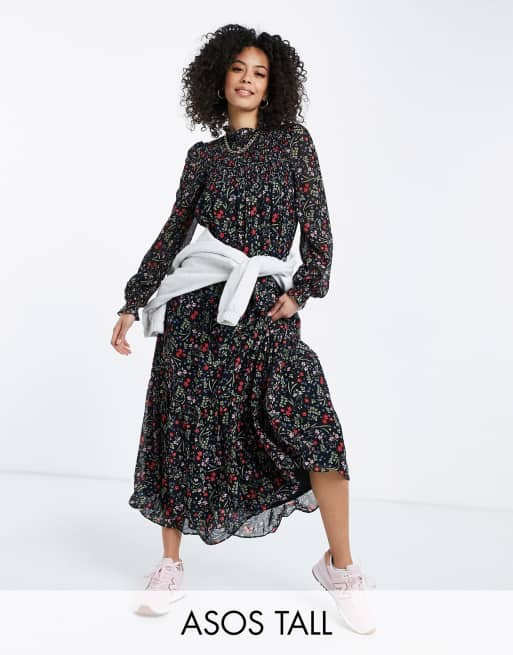 ASOS DESIGN Tall – Sukienka maxi z warstwową górą w kwiatowy wzór