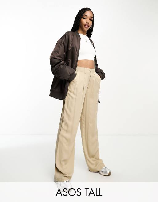 ASOS DESIGN Tall – Szarobrązowe spodnie typu dad z szerokimi nogawkami