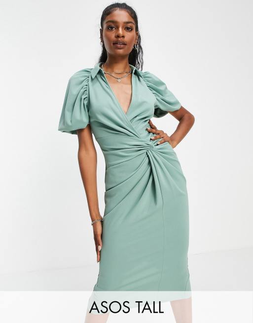 ASOS DESIGN Tall – Szałwiowa sukienka kopertowa midi z ozdobnym węzłem