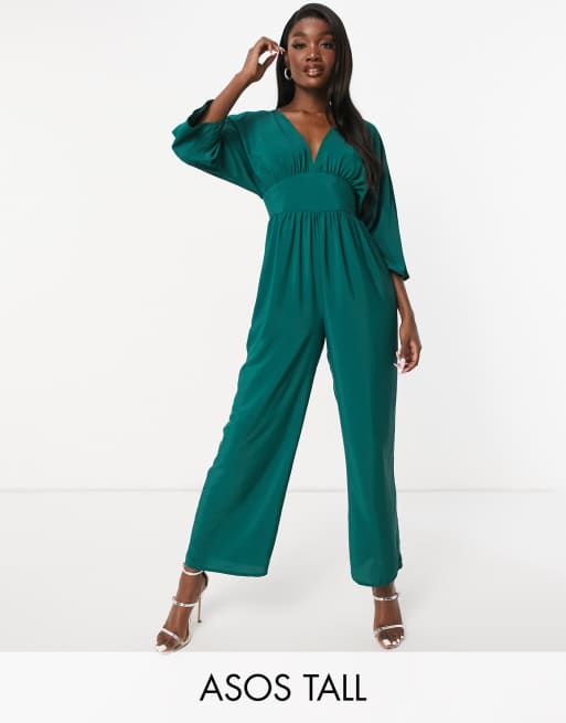 ASOS DESIGN Tall – Zielony kombinezon z kulotami i kimonowymi rękawami